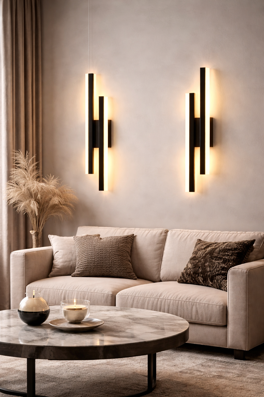 This modern LED wall light is designed to bring clean architectural elegance to contemporary interiors. With its slim vertical profile and refined metal finish, it functions as both a lighting feature and a design statement — enhancing walls with soft, directional illumination rather than overpowering the space.