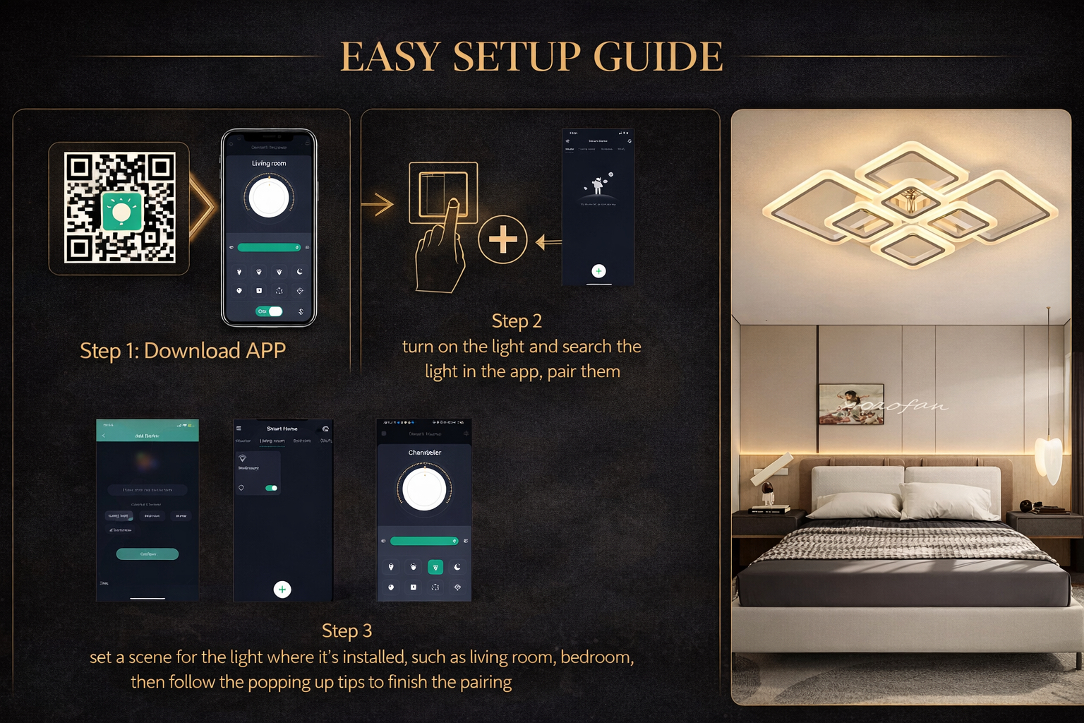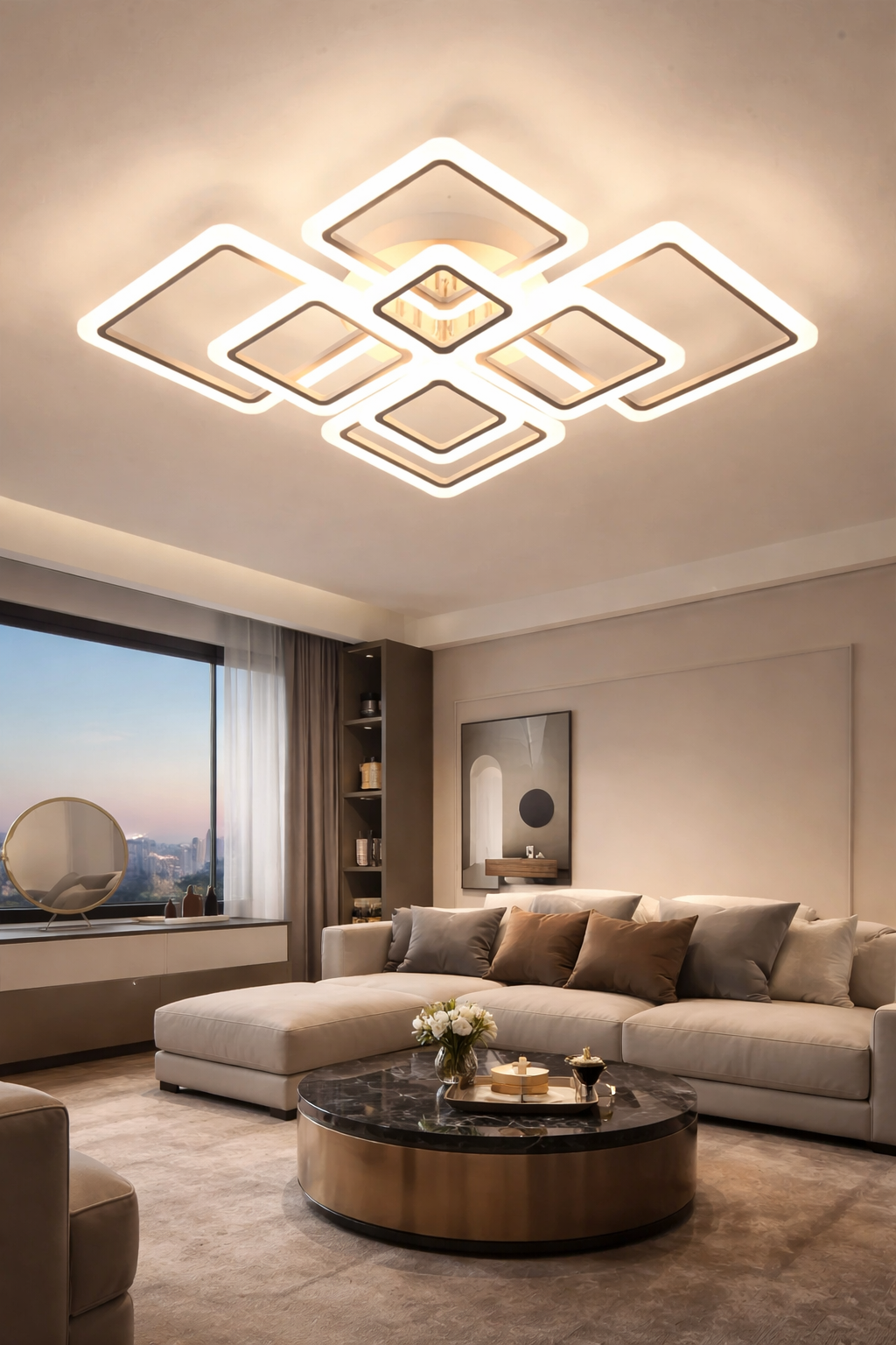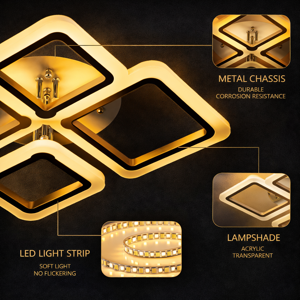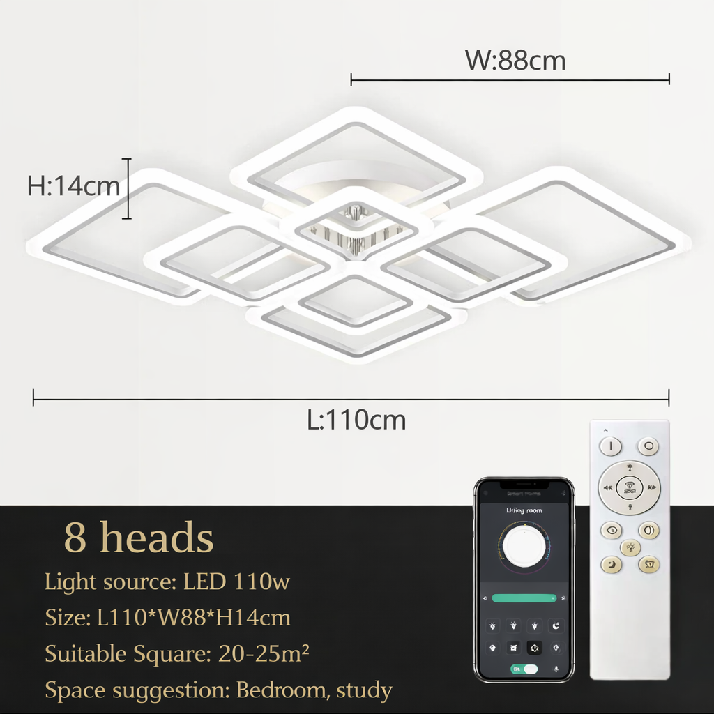 Designed to elevate contemporary interiors, this modern square LED ceiling light blends clean architectural form with advanced smart lighting control. Its balanced geometry and slim profile make it a striking yet understated centrepiece—perfect for refined living spaces that value both aesthetics and performance.