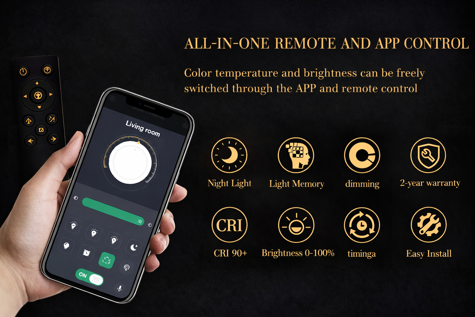 What truly sets this ceiling light apart is its 3-colour infinitely dimmable technology, allowing seamless adjustment between warm, neutral, and cool tones. Whether you’re creating a relaxed evening atmosphere or a bright, focused environment, lighting adapts effortlessly to your needs — all controlled via the included remote.